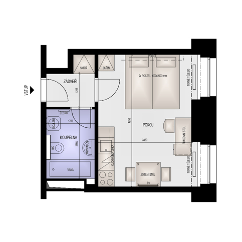 | pokoj s kuchyňským koutem |