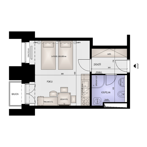 | pokoj s kuchyňským koutem |