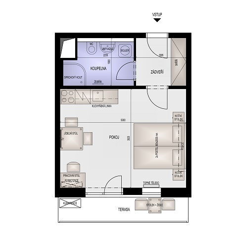 Byt č. 424 1+kk o výměře 34,8 m2 ve čtvrtém nadzemním podlaží