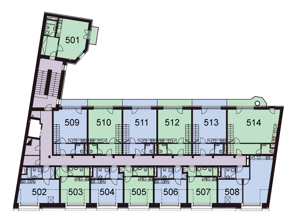 Na této stránce si můžete prohlédnout půdorys pátého nadzemního podlaží. Po kliknutí na konkrétní byt v tabulce nebo jeho půdorys se Vám zobrazí detail bytu.